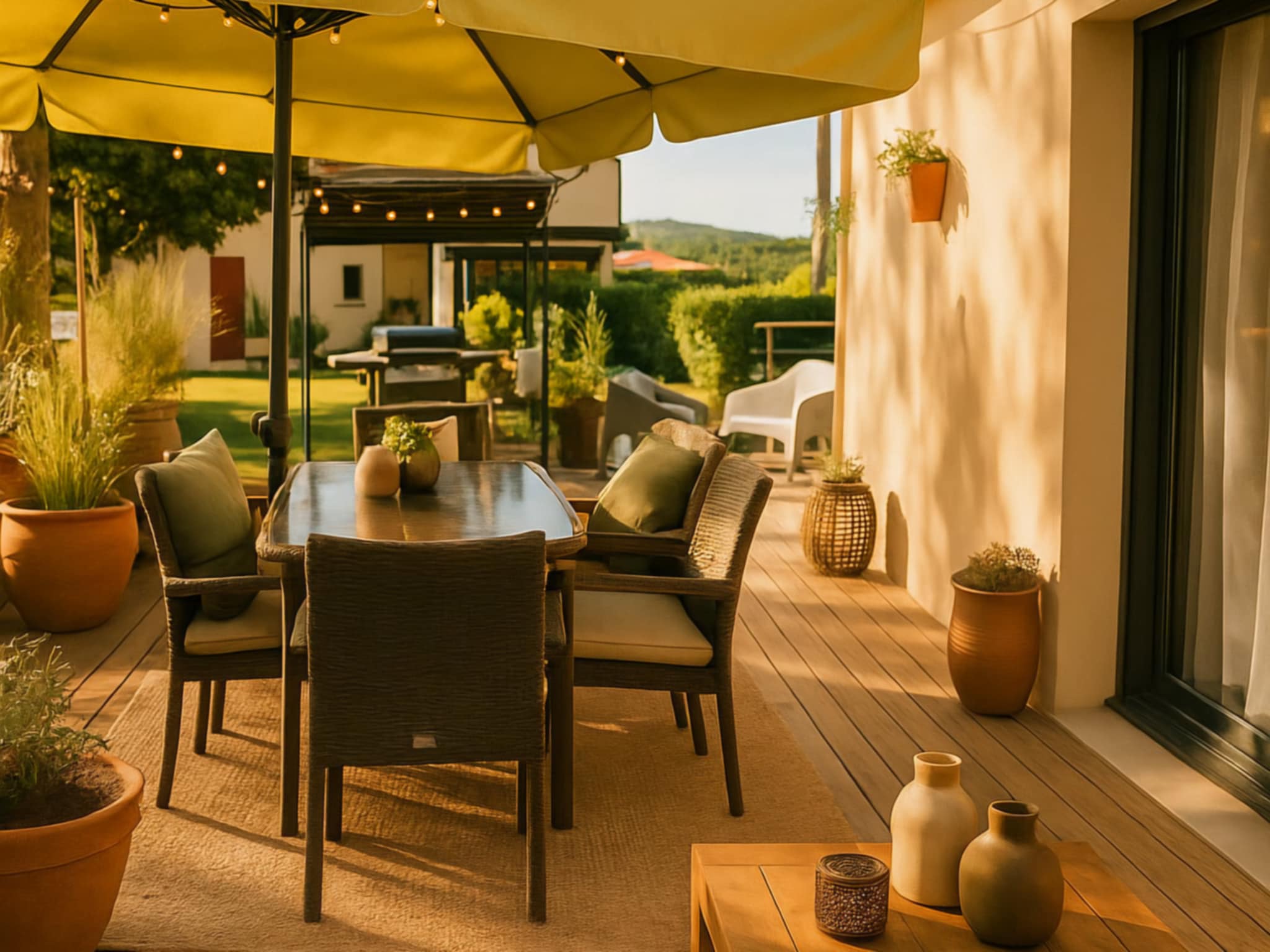 Notre propriété se trouvant côté sud du village, en conséquence vous pourrez vous éviter le désagrément des bouchons routiers en centre-ville à certaines périodes de l’année. La vallée de la Dordogne se trouvant à 10 minutes, vous pourrez ainsi découvrir les plus beaux sites du Périgord noir et les plus beaux villages de France sans à effectuer des heures de trajet en voiture. Le jardin est aménagé en plusieurs espaces distincts, apportant quiétude ainsi qu’une terrasse avec pergola.