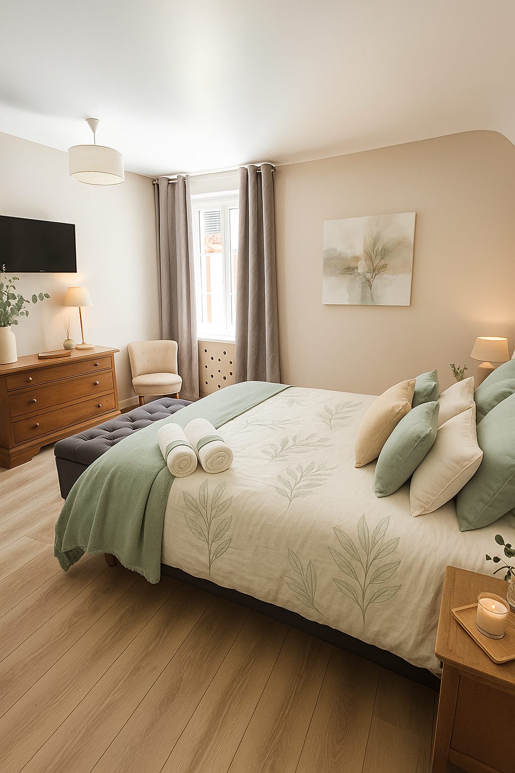 Cette chambre double avec vue sur le jardin est dotée d’une grande télévision connectée à écran plat recevant 200 chaînes et bénéficiant d’un accès gratuit à la plateforme Netflix.