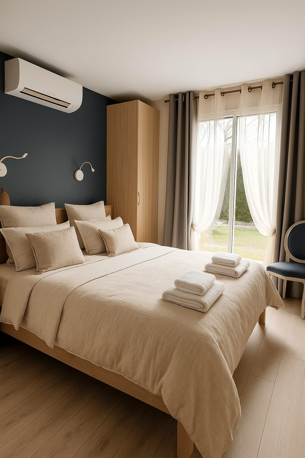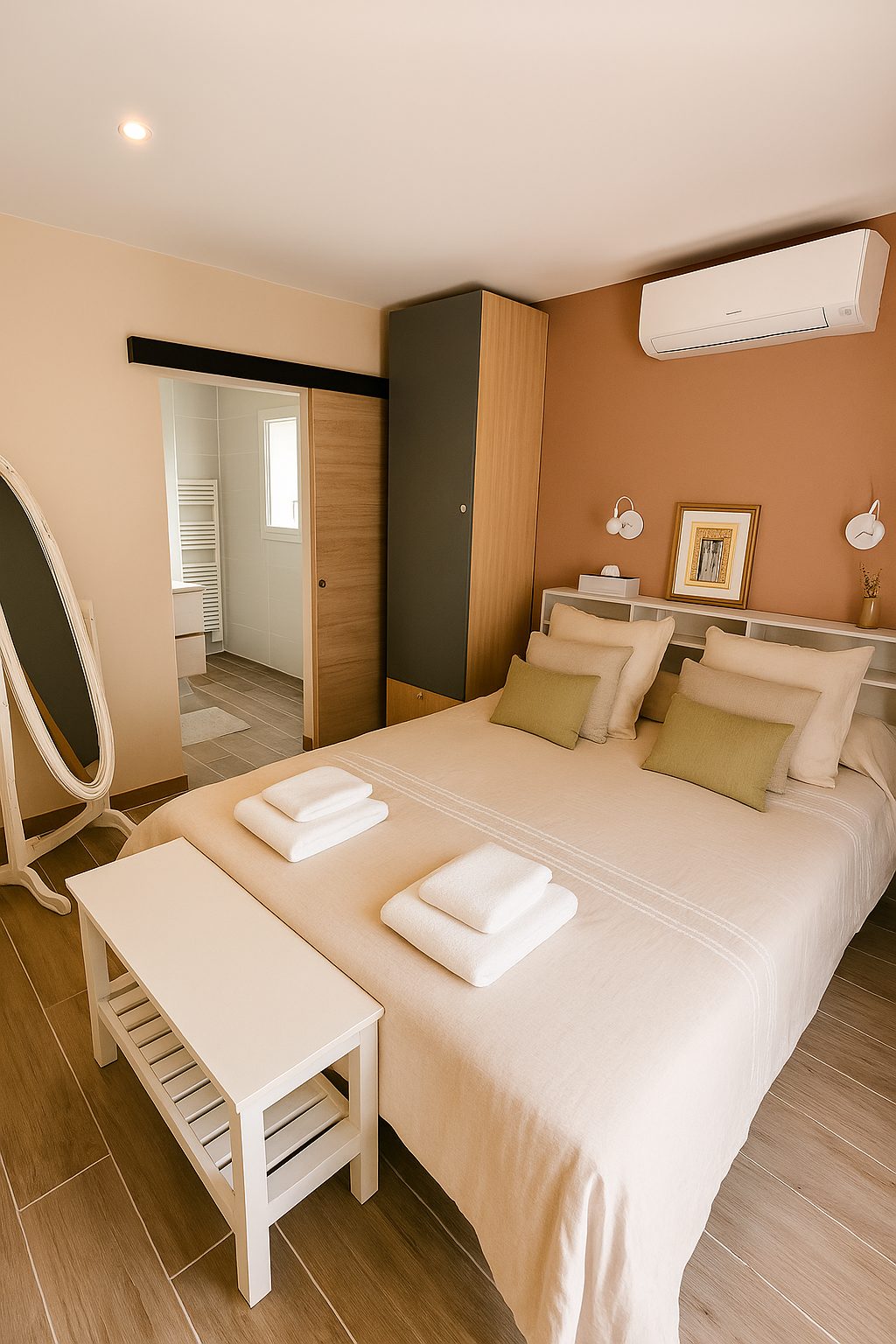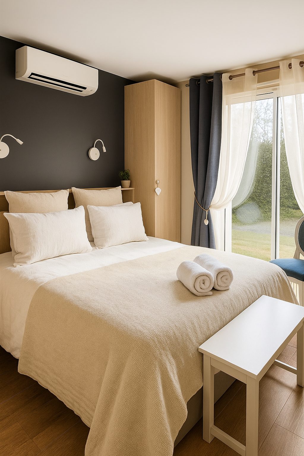 -Une climatisation réversible dans chaque chambre, assurant un confort optimal été comme hiver.